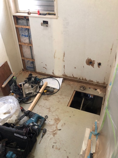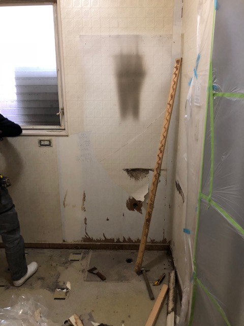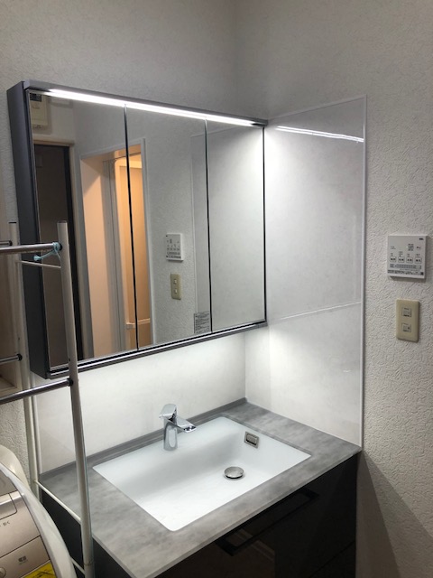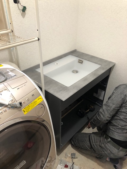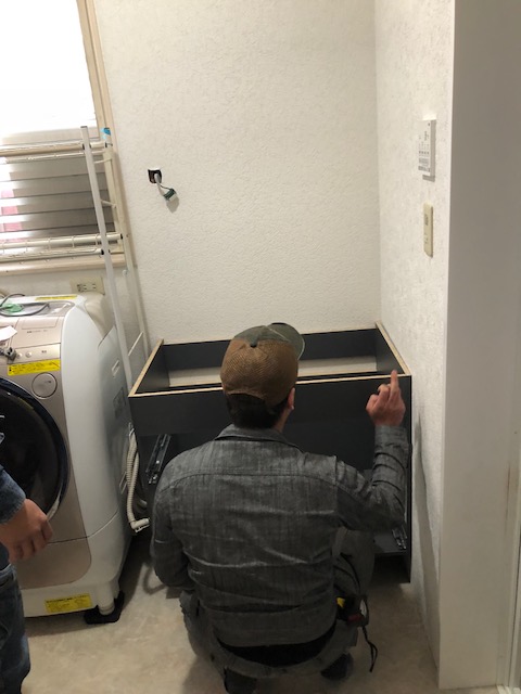 壁や床も綺麗に張り替えていよいよ洗面台の組み付け!