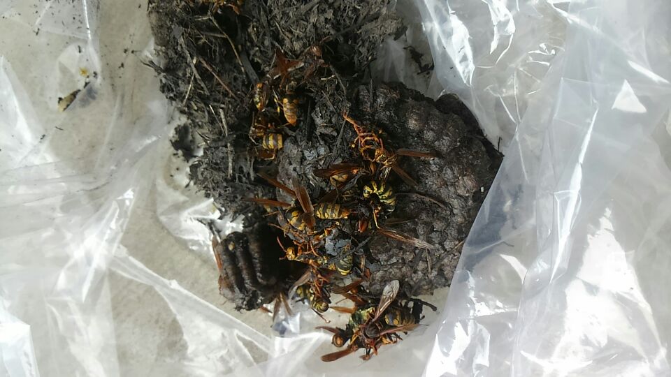 今回はアシナガバチの巣でしたが、これからの季節スズメバチが攻撃性を増す時期になります。刺されたら命を落とすかもしれない猛毒ですので、念のため巣を作っていないかお庭を一周点検して見て下さいね。