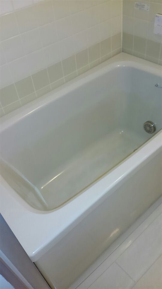 どうでしょう?ベストを尽くしましたが浴槽の黄ばみはうっすら残ってしまっています。たまにこのような難しい汚れもございます。材質の経年劣化が原因かもしれません。でも見て下さい浴槽の下の部分は光ってますよね、ざらざらとした手触りは完全に無くなり、こするとキュキュっと音が鳴る位にまできれいになりました。至りませんがここまでにするのに通常より時間も掛かり今回は大変でした。